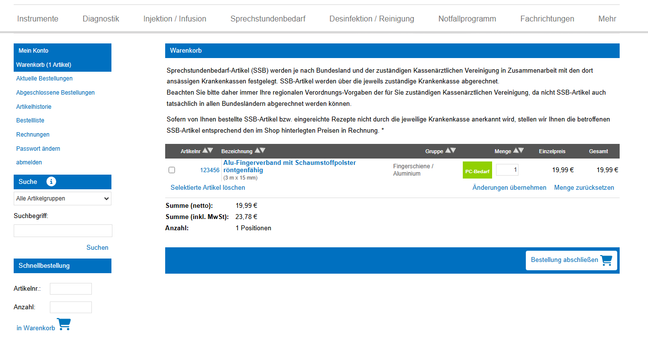 Im Warenkorb erkennen Sie Sprechstundenbedarf-Produkte, Sonderpreise und Kundenpreise sofort.